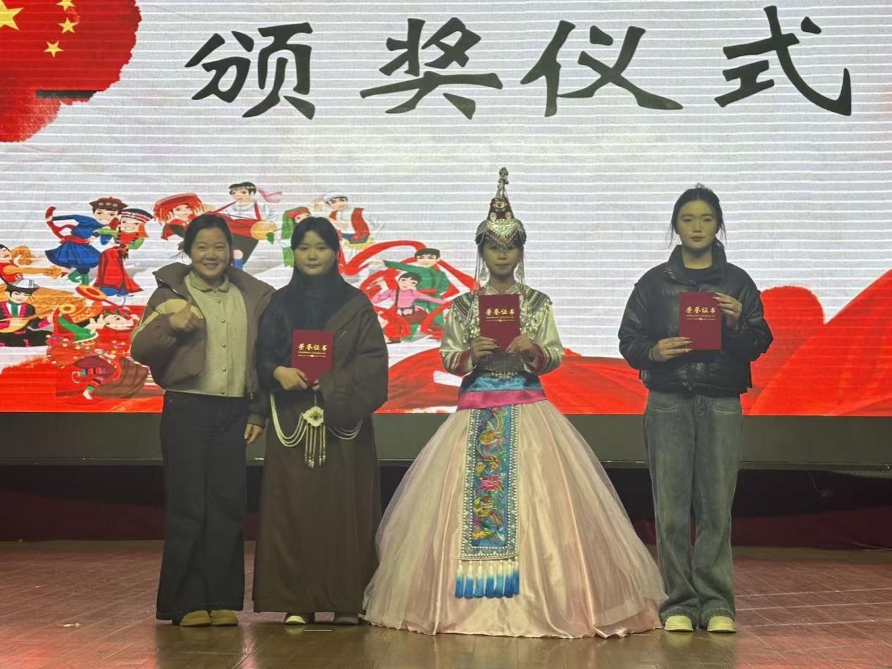 活动现场,各团队通过双语讲述、情景再现等形式,让红色故事“活”起来。从革命先辈的忠诚,到民族文化中的团结基因,再到新时代的奋斗群像,各民族用故事编织出“共同团结奋斗、共同繁荣发展”的精神纽带,为红色血脉赓续与民族团结进步写下生动注脚。最终柯洁“我们从江与湖走来,终在同一个家园相拥”荣获一等奖,雷志梅“凤凰的后代:畲族文化中的图腾与传承”和昂文求卓“藏族时代楷模”荣获二等奖,更尕端智、周艳芳、薛思彤荣获三等奖,王君仪、黄紫蕊、洪紫玲、宋光杰荣获优秀奖,唐伟、汤彬彬、邓立荣获优秀指导老师奖。