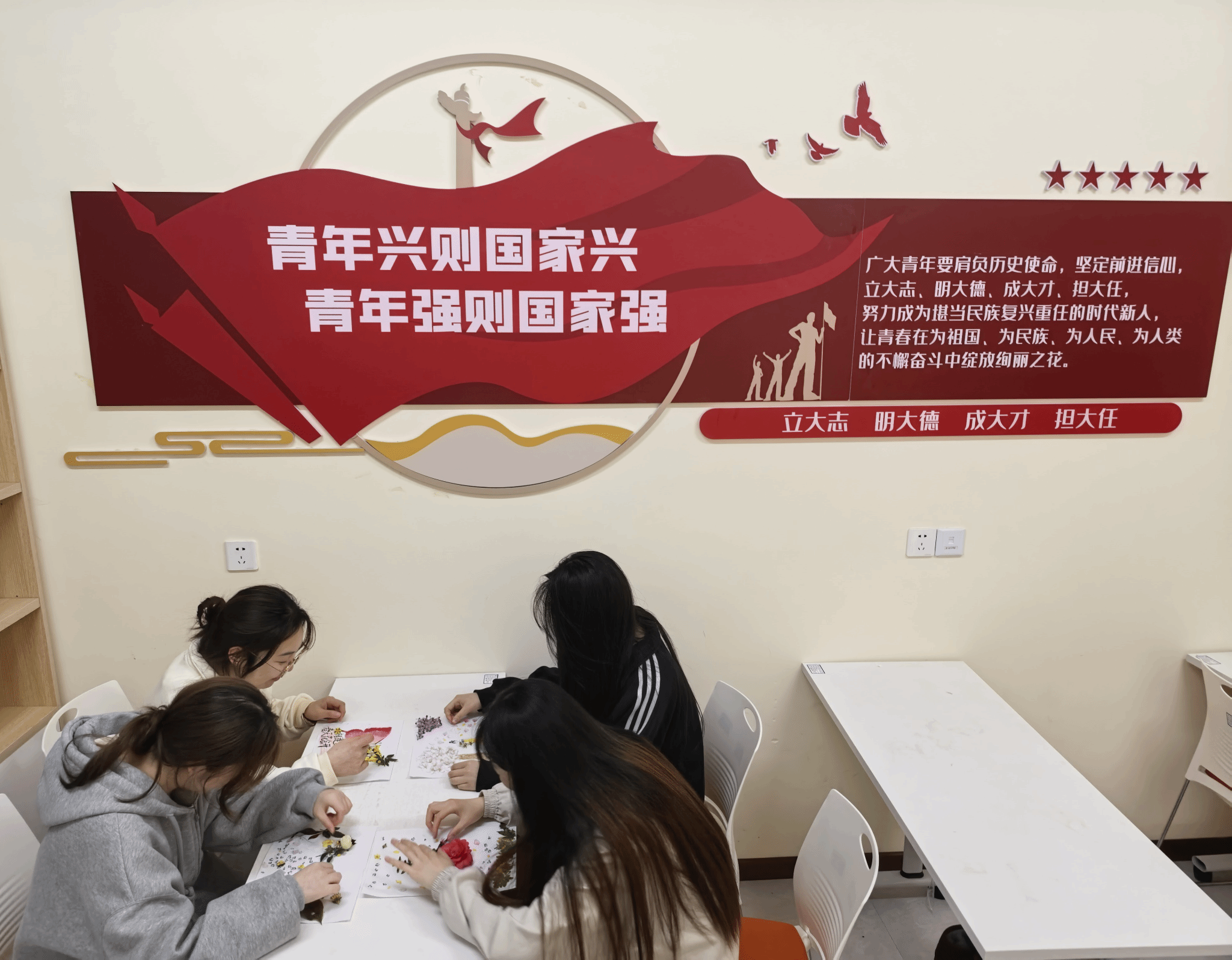 3月27日下午,23栋学生社区琢玉坊内春意盎然,“拾春”主题创意手作活动在此温馨举行。