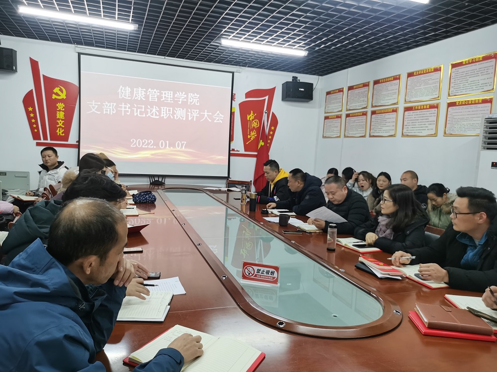 2022年1月7日下午,健康管理学院党总支召开2021年度支部书记抓党建工作述职测评会议。健康管理学院全体33名党员以及5名党外教职工代表参加会议,应到会38人,请假4人,实到34人。会议由健康管理学院党总支书记熊柏祥主持。