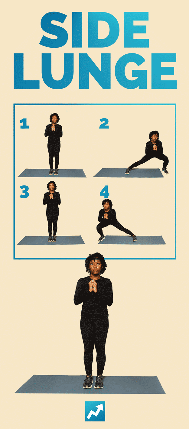 说明:挺胸;将重心移至足中段到脚后跟处,尽柔韧度允许的最大可能做侧弓步。