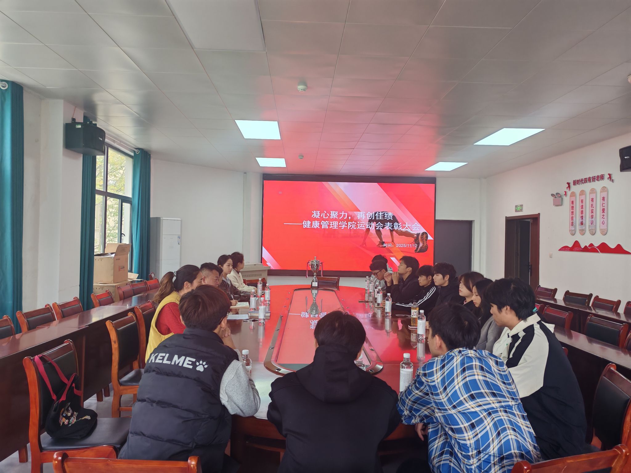咸宁职业技术学院第二十届田径运动会暨第十四届教职工趣味运动会在11月6日-7日隆重举行,健康管理学院运动健儿取得团体总分第二名的优异成绩。为再接再厉,健康管理学院在11月12日下午隆重召开学校运动会表彰大会。健康管理学院副书记姚发、相关辅导员、获奖运动员代表参加大会。