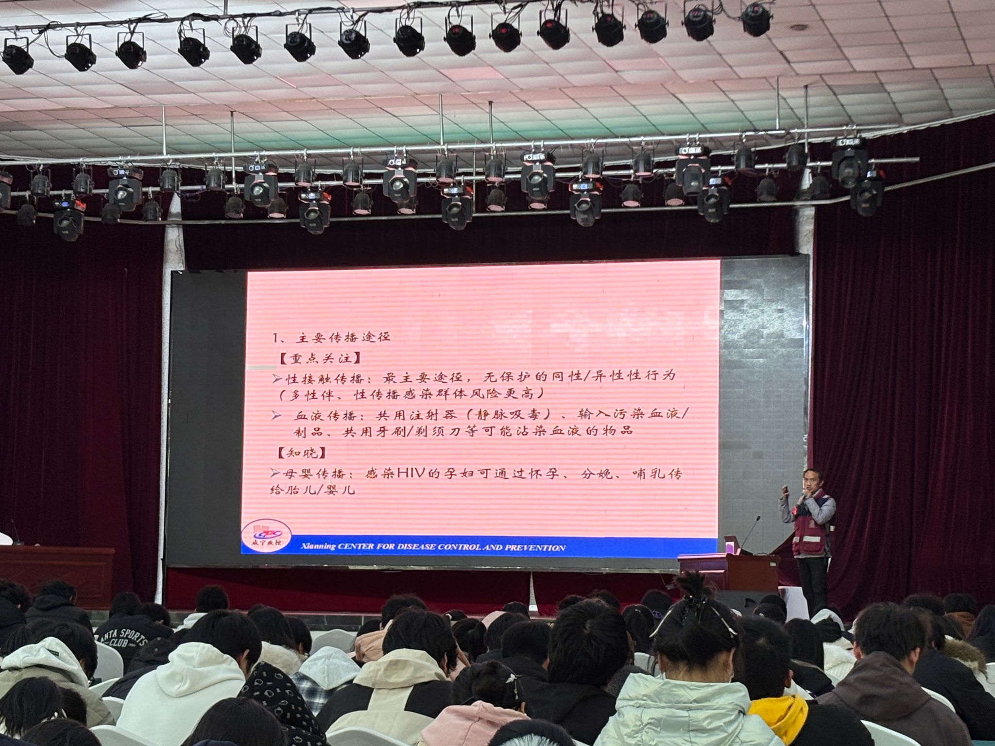 活动在大学生活动中心拉开帷幕。开幕式上,主办方代表宣读了防艾倡议书,呼吁全体师生摒弃对艾滋病患者的歧视,主动参与检测,共同承担防艾责任。随后,咸宁市疾病预防控制中心的防艾专家以深入浅出的方式,系统讲解了艾滋病的传播途径、预防措施、检测服务及关怀救助政策,特别强调了“早检测、早治疗”的重要性。专家结合真实案例与数据,破除“艾滋恐惧症”,引导学生以科学态度认知艾滋病,现场互动环节中学生踊跃提问,专家一一耐心解答,形成了良好的知识传播氛围。